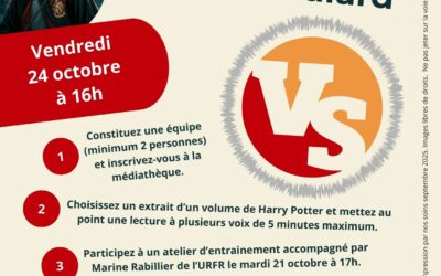 L'URFR organise des temps de médiation toute l'année et le prochain est une battle de lecture Harry Potter ! C'est en partenariat avec la Médiathèque de Celles-sur-Belle dans le cadre de la Semaine en famille. Inscrivez-vous à deux ou plus et donnez de la voix pour...